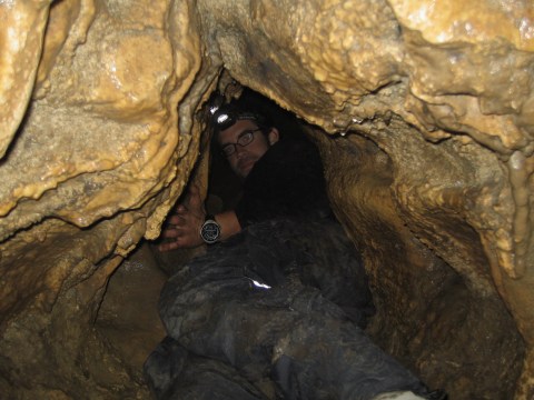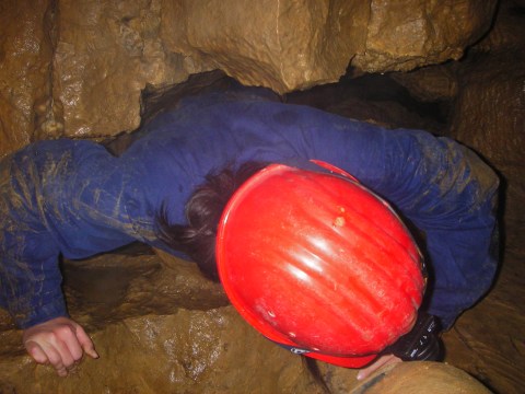 Geht man in nördlicher Richtung weiter, verengt sich der Hauptgang zu einen rechteckigen Schluf, der breiter und höher wird und anschließend zum Nordeingang führt, der auf einer kleinen Felsterasse sitzt.
